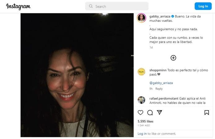 después Sergio Carlos Declarado sencillo durante la previa de la edición especial de Noche de Luz "Verano + Hot", Gabriela Ariaza (Gabby) Publicó un mensaje en su cuenta de la red social Instagram, con el que -según los internautas- respondió a la revelación de su expareja.