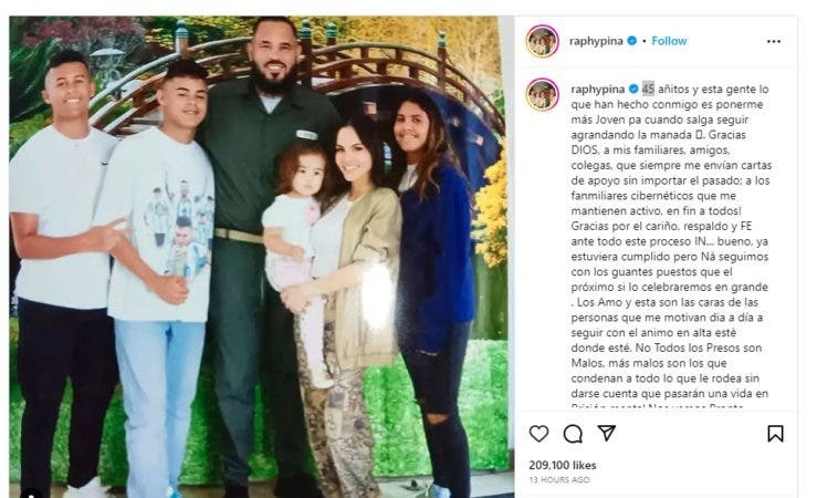 “Tener 45 años y lo que me ha hecho esta gente me hace sentir más joven Cuando sale a seguir criando el rebaño", escribió el puertorriqueño junto a una fotografía en la que aparece vestido como un recluso y su familia.