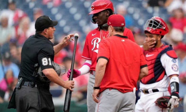De La Cruz, uno de los mejores novatos en las mayores y uno de los impulsores del ascenso de Cincinnati a la cima de su división, tenía una cubierta de sensor vacía en la perilla de su bate. Pero fue retirado después de que el mánager de los Nacionales, Dave Martínez, cuestionara su uso antes de que el jugador del cuadro anotara el segundo.