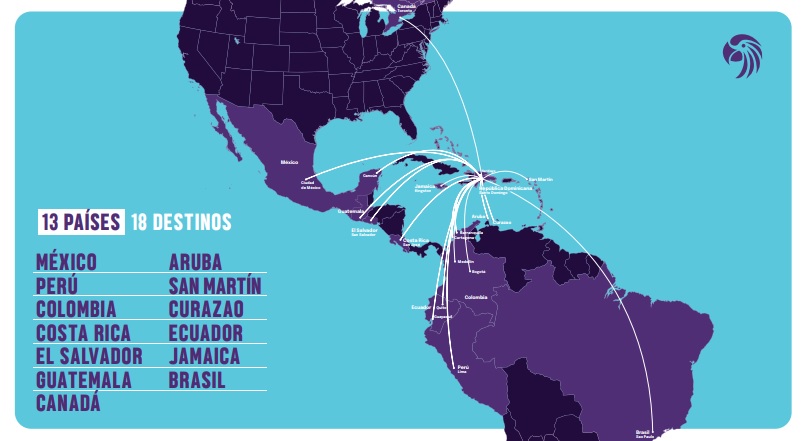 Arajet está convirtiendo a República Dominicana en el nuevo hub de bajo costo del continente, ofreciendo vuelos directos desde Santo Domingo a Ciudad de México, Cancún, San José, Guatemala, San Salvador, Bogotá, Medellín, Barranquilla, Quito, Guayaquil, Lima, Sao. Paulo, Aruba, Curacao, St. Martin, Kingston y 74 conexiones a las mejores tarifas y en los nuevos aviones Boeing 737 MAX 8 que ahorran un 14% más de combustible que los aviones de pasillo único disponibles en el mercado regional y reducen un 40% los costos. La contaminación acústica.