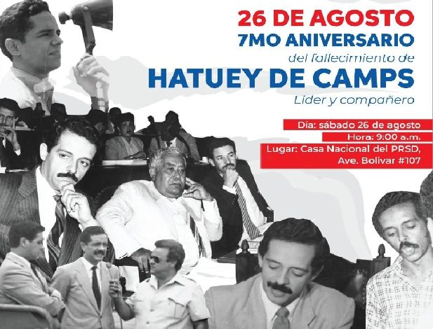 Santo Domingo.- El fallecido presidente del Partido Revolucionario Social Demócrata (PRSD), Hatuey De Camps, será recordado este sábado 26 de agosto en la Avenida Bolívar, con diversas actividades en las instalaciones de la organización para conmemorar el séptimo aniversario de su muerte.