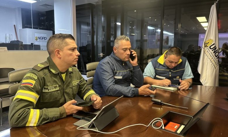 Miembros de la Unidad Nacional para la Gestión del Riesgo de Desastres trabajando en la emergencia por el derrumbamiento en Colombia