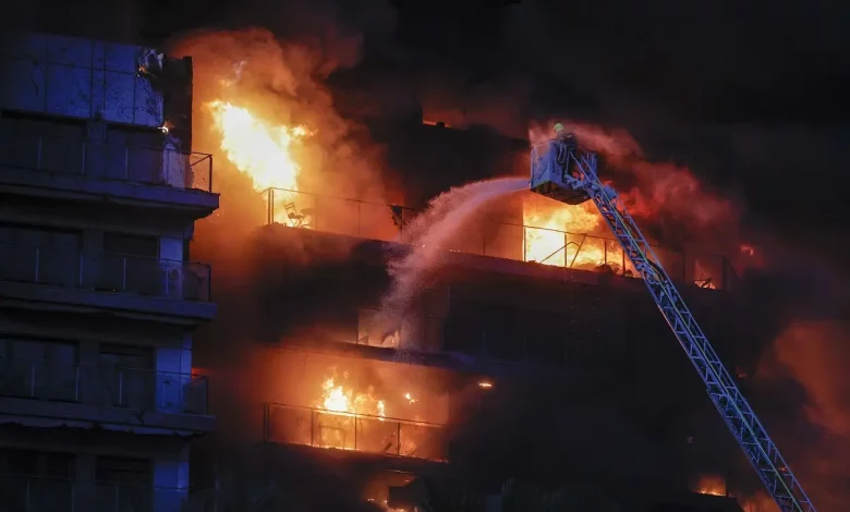 Incendio devora un edificio de viviendas en la ciudad española de Valencia