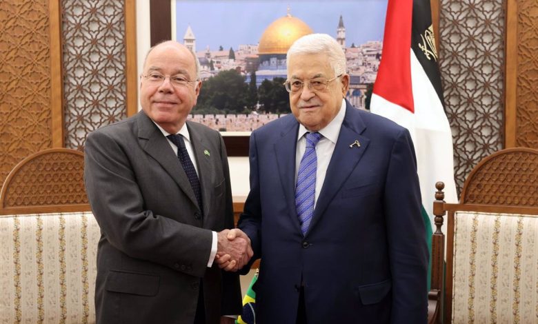 El presidente palestino, Mahmud Abbas, y el ministro de Asuntos Exteriores de Brasil, Mauro Vieira – PRESIDENCIA PALESTINA