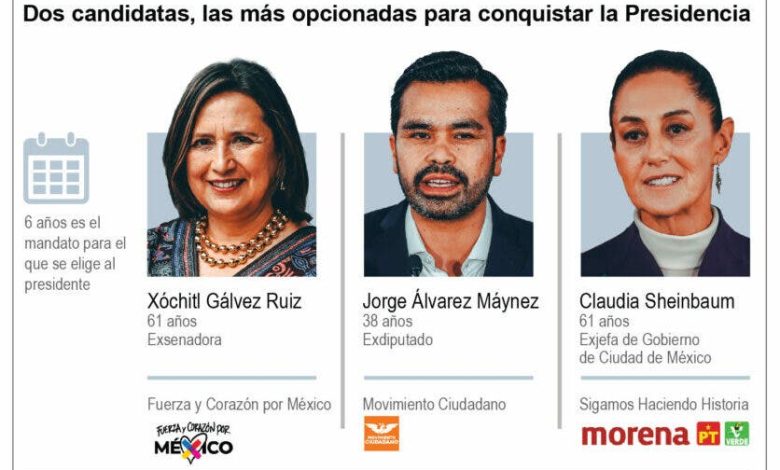 La ciudadanía encontrará en las boletas tres opciones- la del oficialismo, encabezada por Claudia Sheinbaum, exjefa de Gobierno de la Ciudad de México; la del frente opositor Fuerza y Corazón por México, liderada por la exsenadora Xóchitl Gálvez, y la del también opositor Movimiento Ciudadano (MC), con el diputado federal en licencia Jorge Álvarez Máynez al frente.
