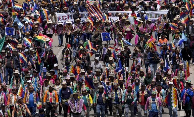 La Paz.- La movilización que lidera el expresidente boliviano Evo Morales (2006-2019) llegó ayer a la comunidad de Achica Arriba, a 35 kilómetros de La Paz, su destino final, bajo un clima de tensión que se generó por algunas horas en la ciudad de El Alto, contigua a la sede de Gobierno.