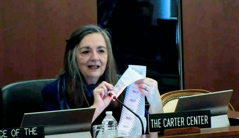 “Se me envió por correo, se lo voy a mostrar después de esta sesión para que ustedes los vean. Se trata de actas originales de Venezuela que tienen un código QR que es significativo y que le permiten a los testigos de miles y miles de mesas recabar información de manera sistemática”, dijo la asesora principal para América Latina del Centro Carter, Jennie Lincoln, durante una sesión del Consejo Permanente de la OEA celebrada en Washington.