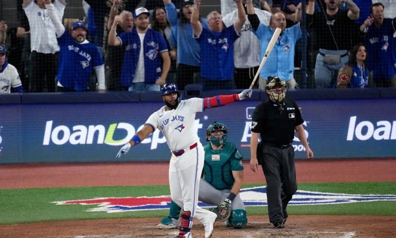 Vladimir Guerrero Jr. conectó su sexto jonrón en esta postemporada, el novato Trey Yesavage ponchó a siete en 5 2/3 entradas y los Azulejos de Toronto llevaron la Serie de Campeonato de la Liga Americana al límite al vencer a los descuidados Marineros de Seattle 6-2 el domingo por la noche.