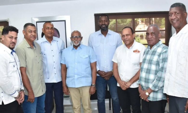 En el centro Ángel de la Cruz, quien presidirá el Comité Organizador del Abasadto. Estuvo acompañado desde la izquierda por Erikson Quiro Brito, Víctor Hansen, José Esteban Borromé, Willlian Cabral, Agustín Matos Martínez, Roberto Ramírez y Augusto Martínez.