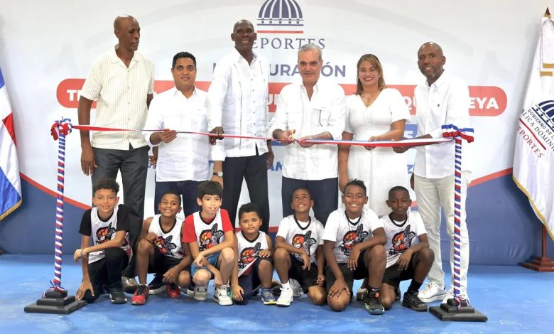 La Romana.– El presidente Luis Abinader encabezó este sábado la inauguración del techado multiuso del Club La Tribu, en el sector Quisqueya, cumpliendo así una promesa asumida con la comunidad y con la familia del baloncestista dominicano Al Horford.
