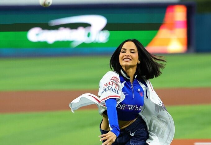 La cantante dominicana Natti Natasha realizó este lunes el lanzamiento ceremonial previo al partido entre República Dominicana e Israel en el Clásico Mundial de Béisbol.