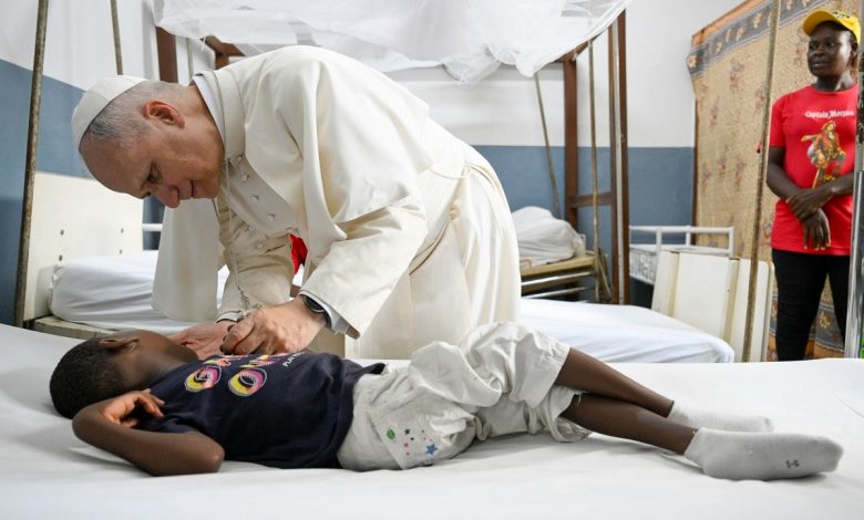 El cariño del Papa por los niños enfermos en el hospital Saint Paul de Douala