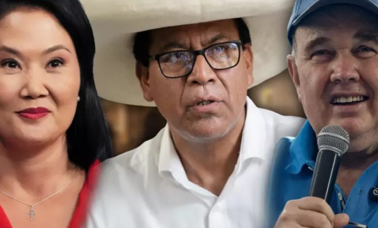 Los candidatos Roberto Sánchez, Rafael López Aliaga y Jorge Nieto, marcaron un empate técnico a tres bandas con alrededor del 11,9% de los votos.