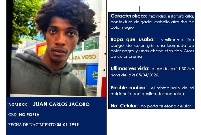 Se trata de Juan Carlos Jacobo, de 27 años, quien se encontraba ubicado en la citada provincia de la Región Oriental cuando su madre denunció su desaparición el pasado 5 de abril.